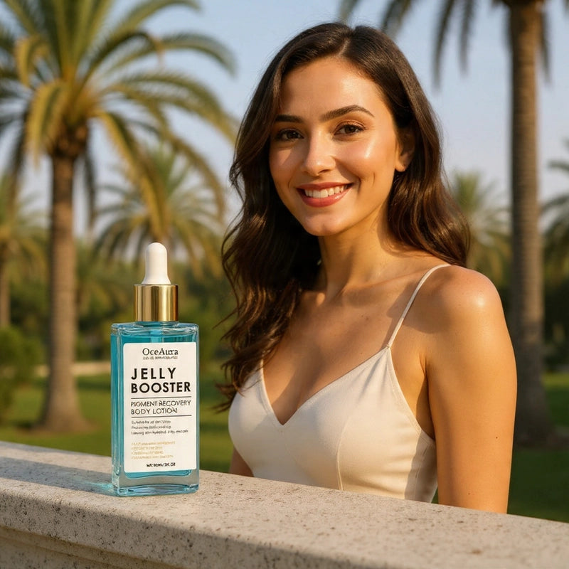 OceAura Jelly Booster isn't just a lotion; it's a glow-up in a bottle! Its unique jelly texture, pigment recovery benefits, and instant hydration deliver an unparalleled radiant finish that feels luxurious and looks effortless.